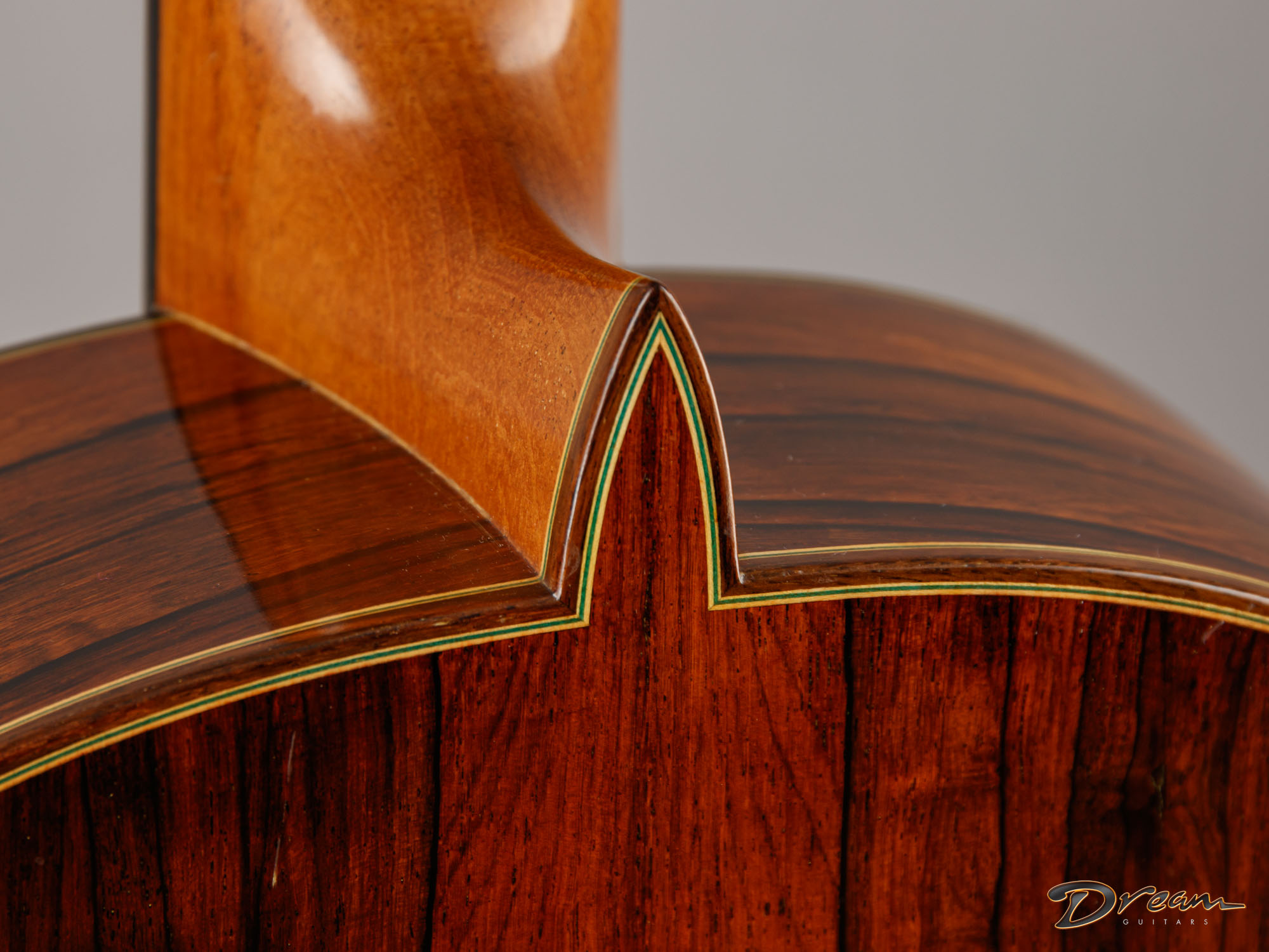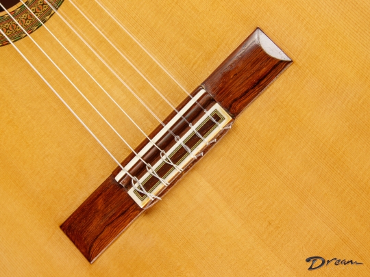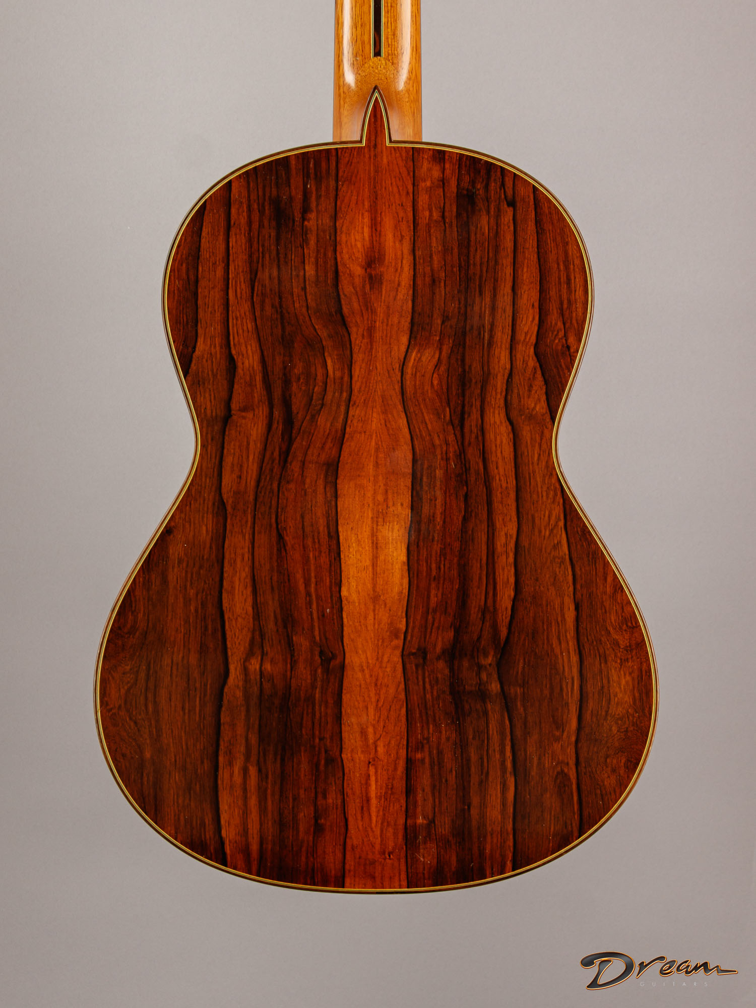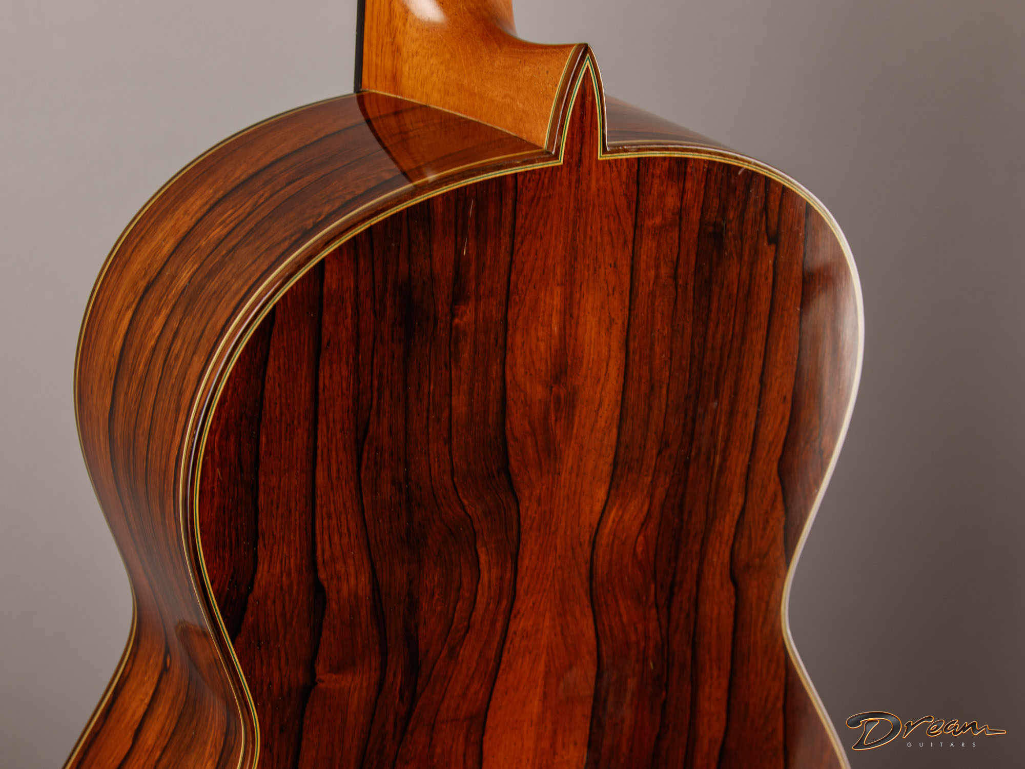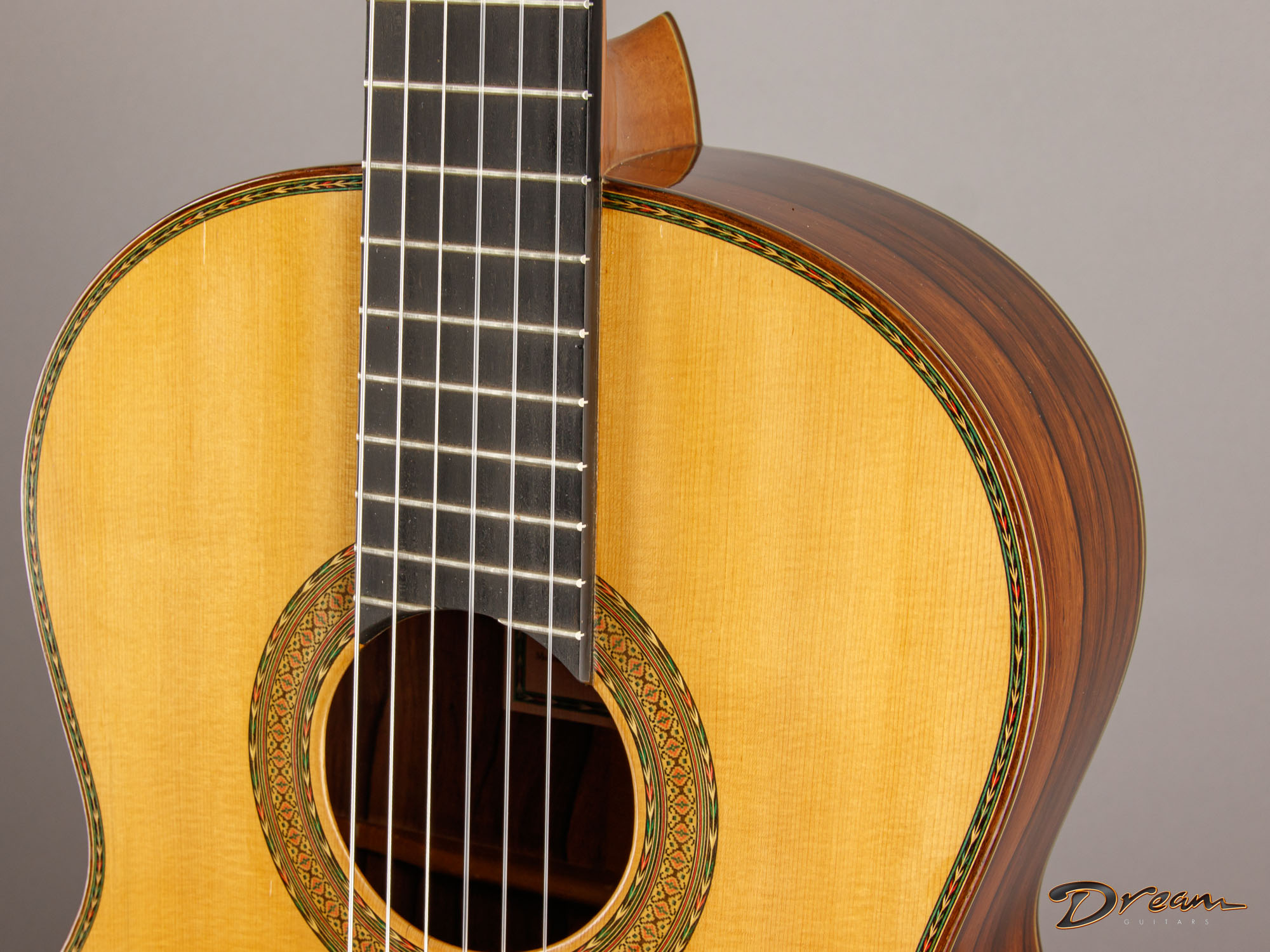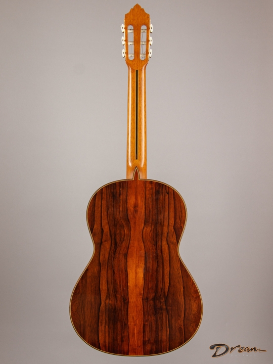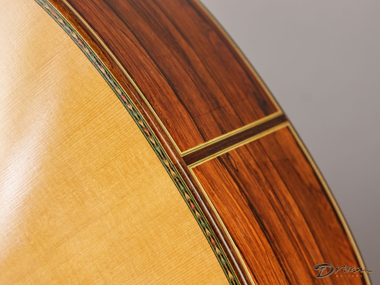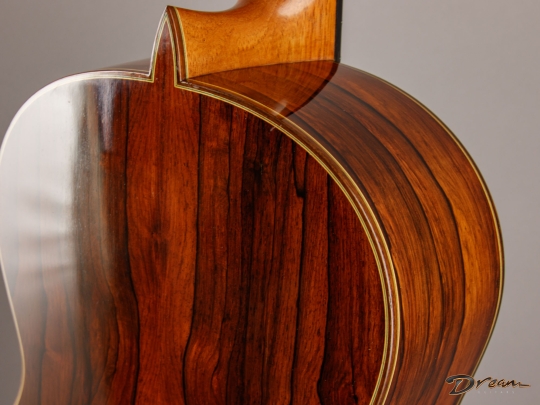 The Madagascar Rosewood on this one is simply stunning, but more importantly, it gives the guitar a depth and power that really move you. The spruce top has opened up beautifully over the years, adding warmth and nuance to the voice.