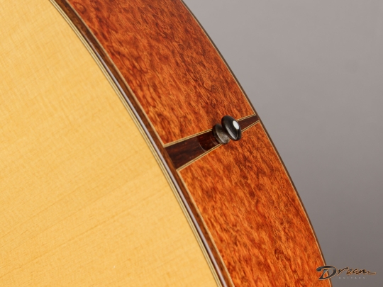 I get to play a lot of crossovers, but rarely a 14-fretter. Thanks to the Goodall team for the extra fingerboard space! They built this Bubinga beauty for the 2008 NAMM show, where it must have cause quite a splash. Strong bass response and quick trebles, an effortless setup, and with a 25.5" scale it's got the string tension to support some flatpick work as well.