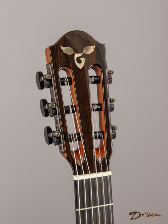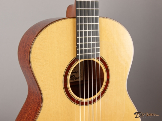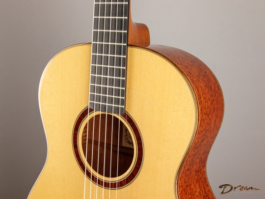 The Bubinga is absolutely stunning, and paired with Port Orford Cedar, it produces a tone that’s clear, rich, and wonderfully balanced. I love how comfortable this guitar feels—the radiused fingerboard and thoughtful neck shape make it instantly approachable, whether you come from the steel-string or classical side. It’s elegant, expressive, and an absolute joy to play.