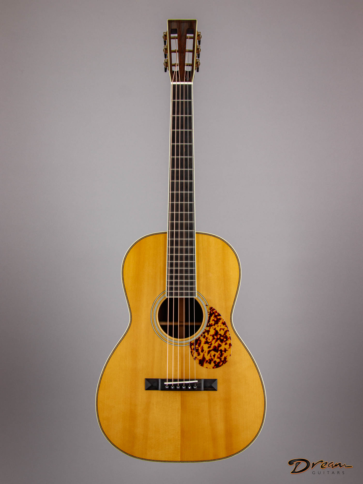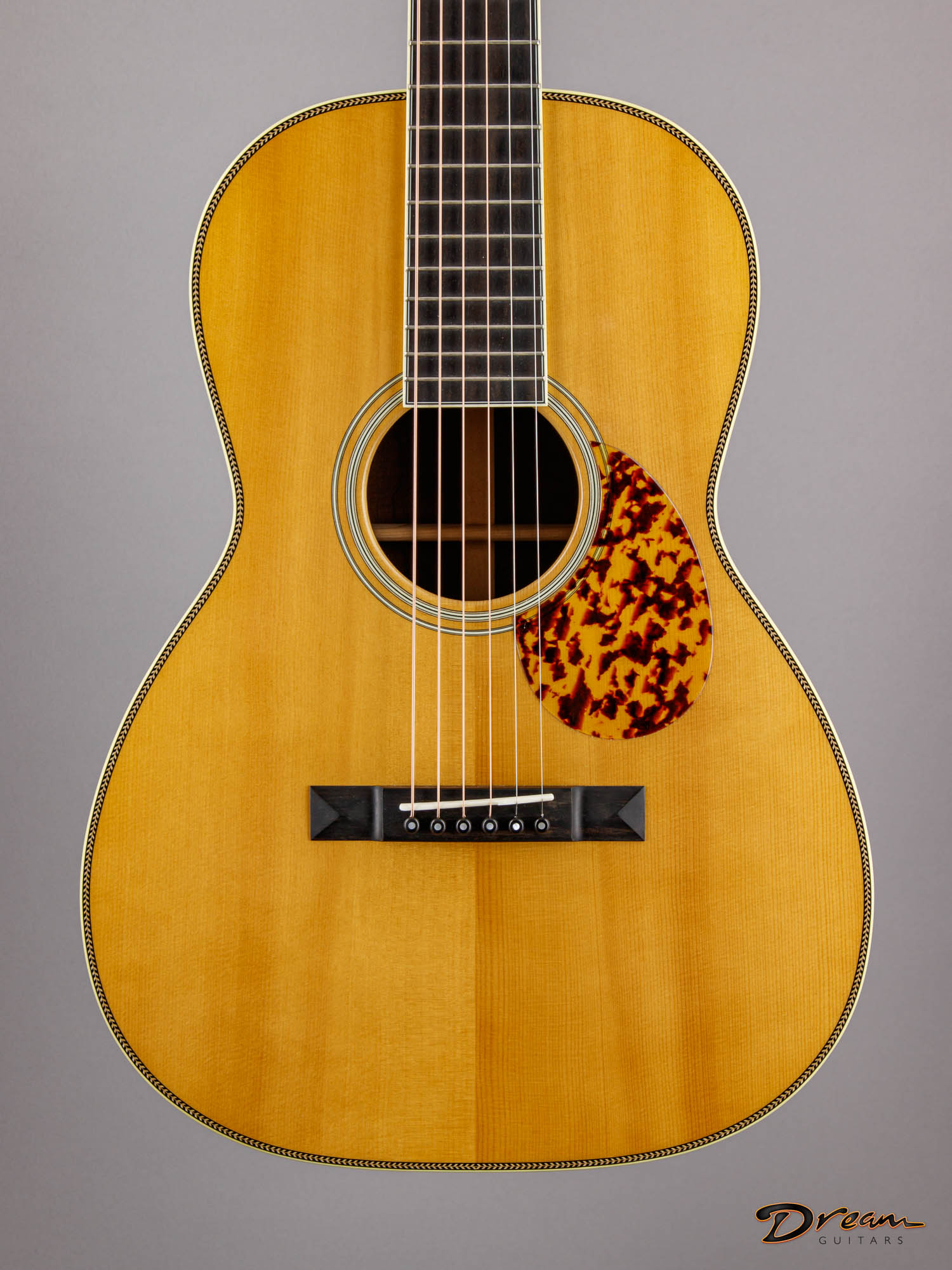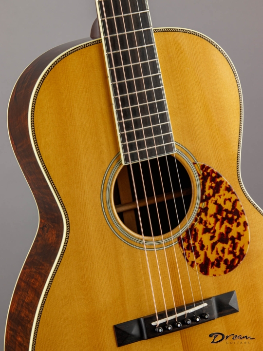 Richard Hoover's done so much for the lutherie community. It's great to see another example of his team's handiwork here in the shop, this time upgraded with Brazilian Rosewood and vintage design specs. Don't let the small dimensions fool you, this one packs a wallop.