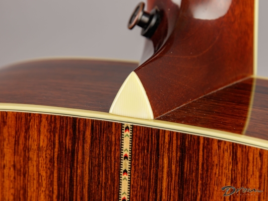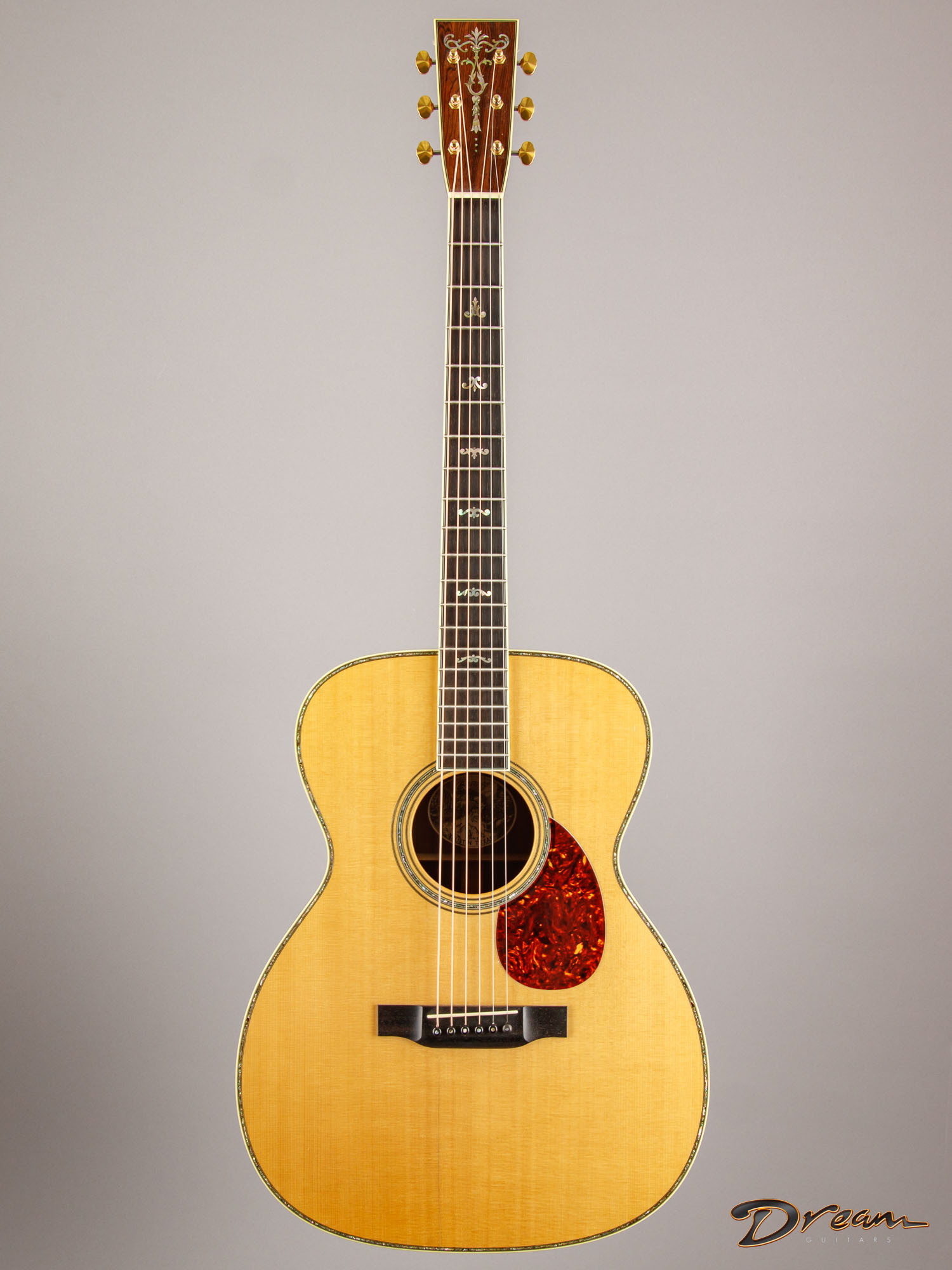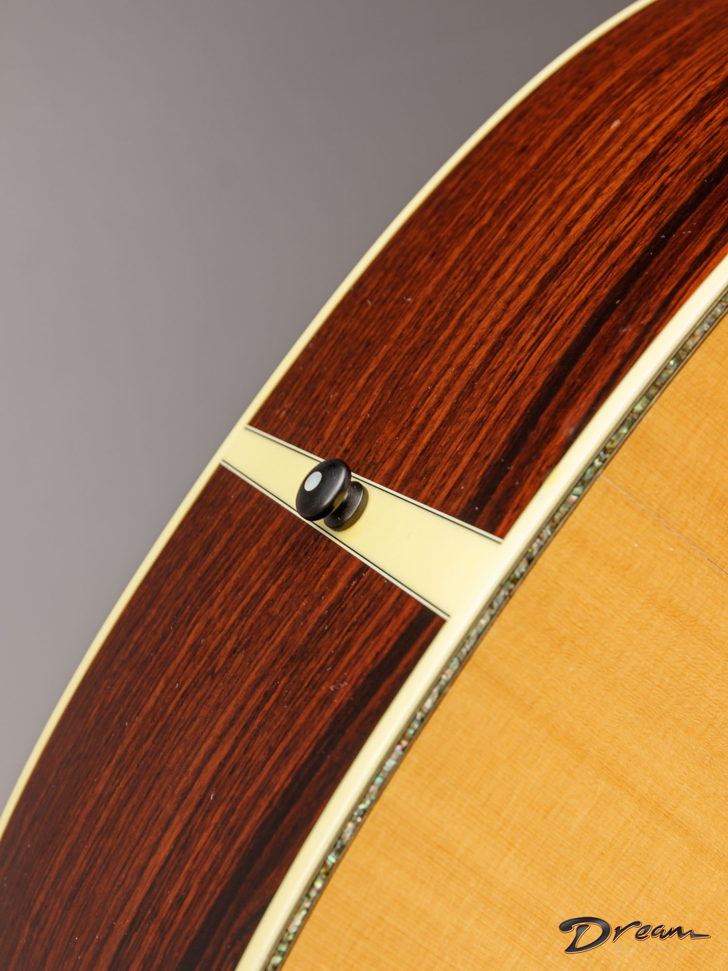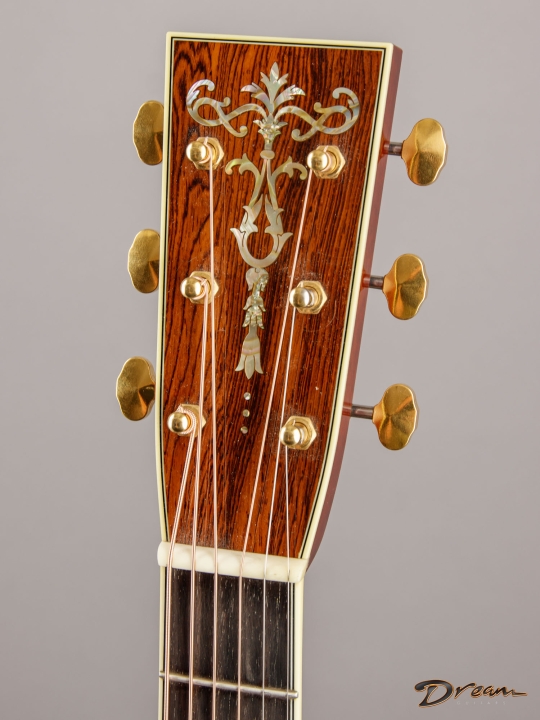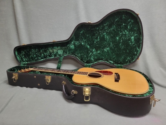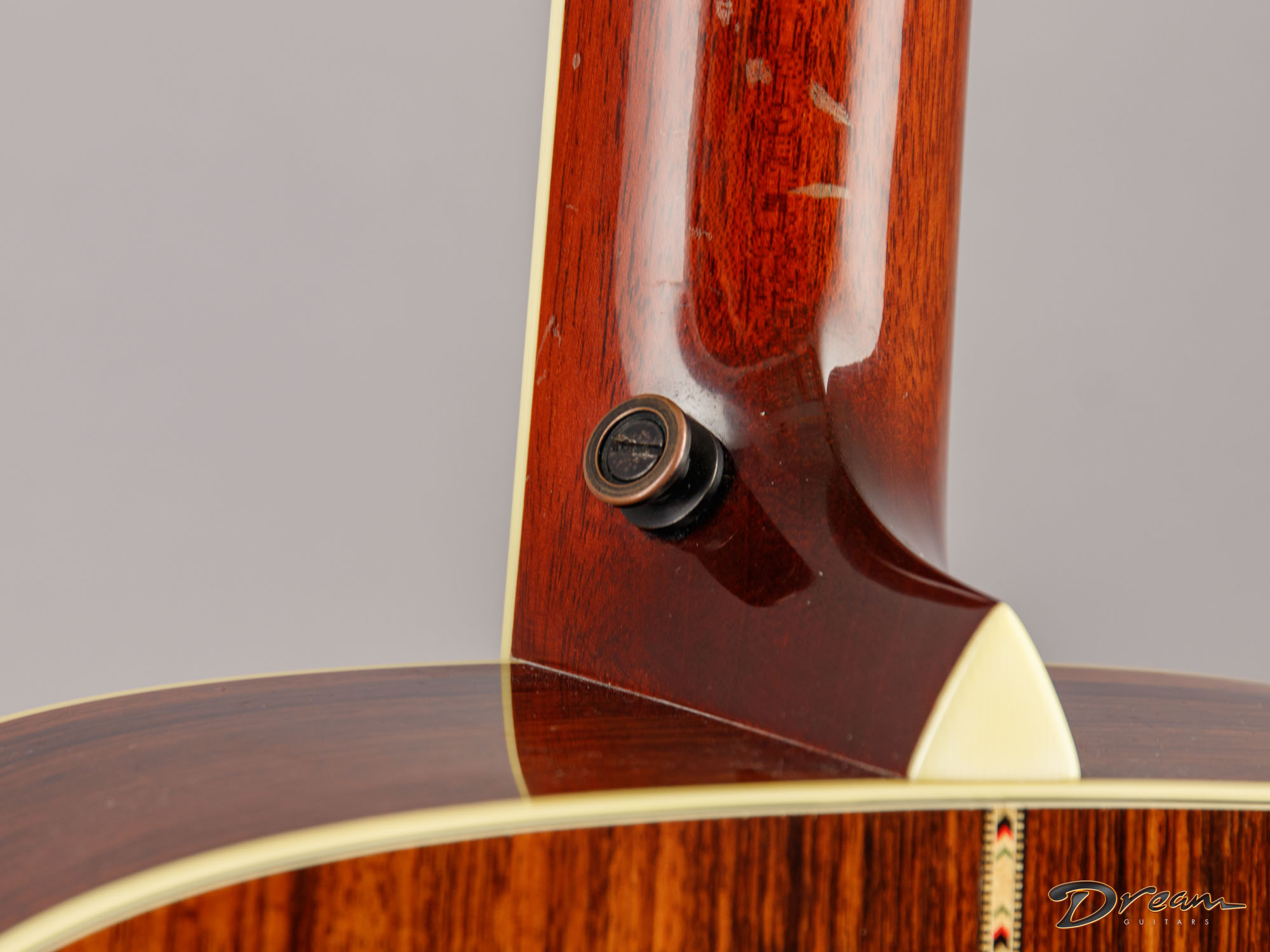 1997 Collings OM-41E with Indian Rosewood back and sides and an Engelmann Spruce top. This OM is truly astounding. The Art Nouveau fingerboard inlays and torch headstock detail lend it an elegant, almost austere look—but the real magic lies in the tone. Indian Rosewood is sometimes dismissed as a lesser tonewood, but this guitar would cause an existential crisis for anyone who believes that.