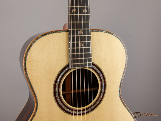 A rare Adirondack-topped Olson from 2002, with striking Brazilian Rosewood and over two decades to open up its voice. Jim’s guitars are typically Cedar, so this one stands apart—powerful and clear.
