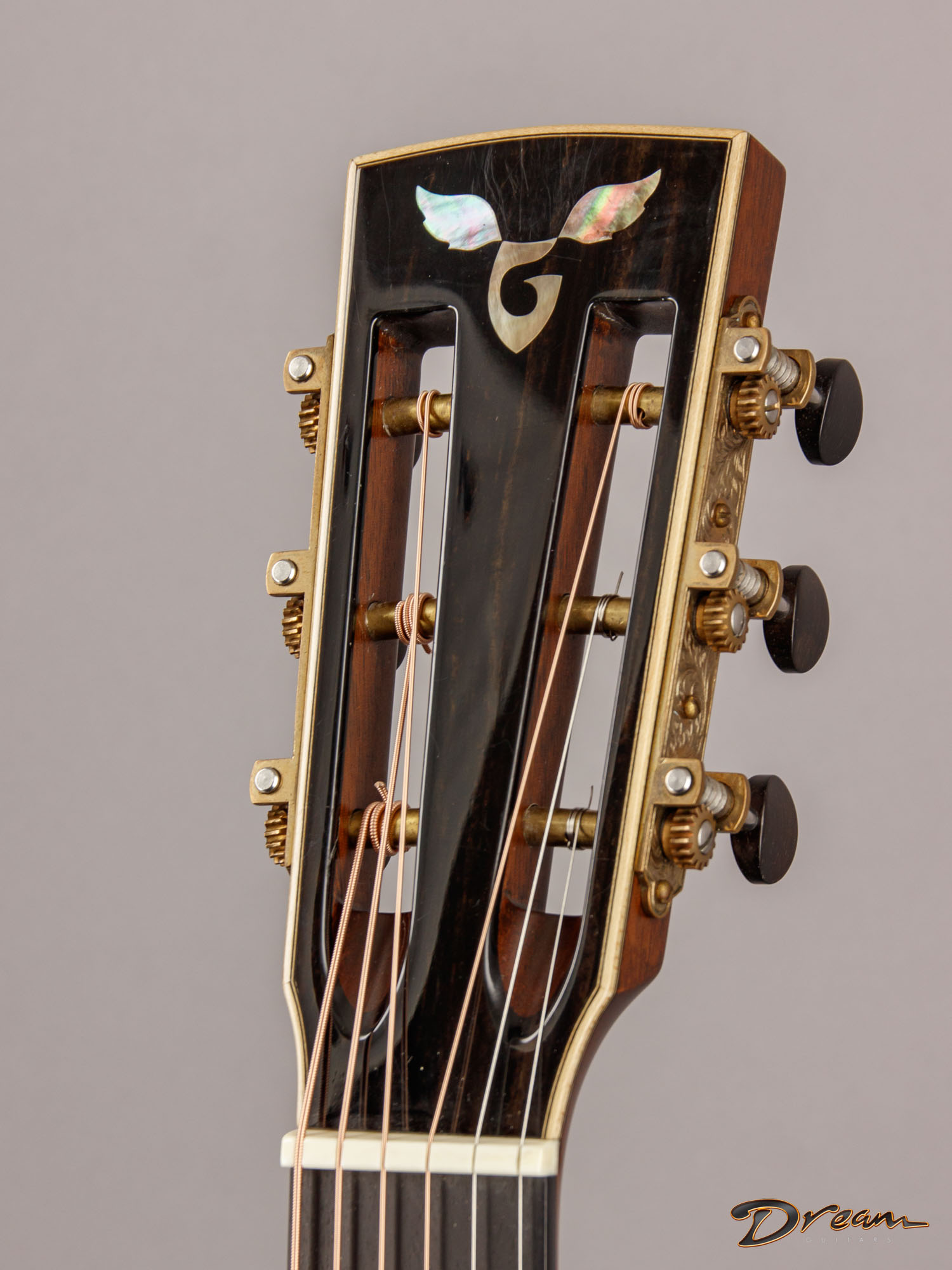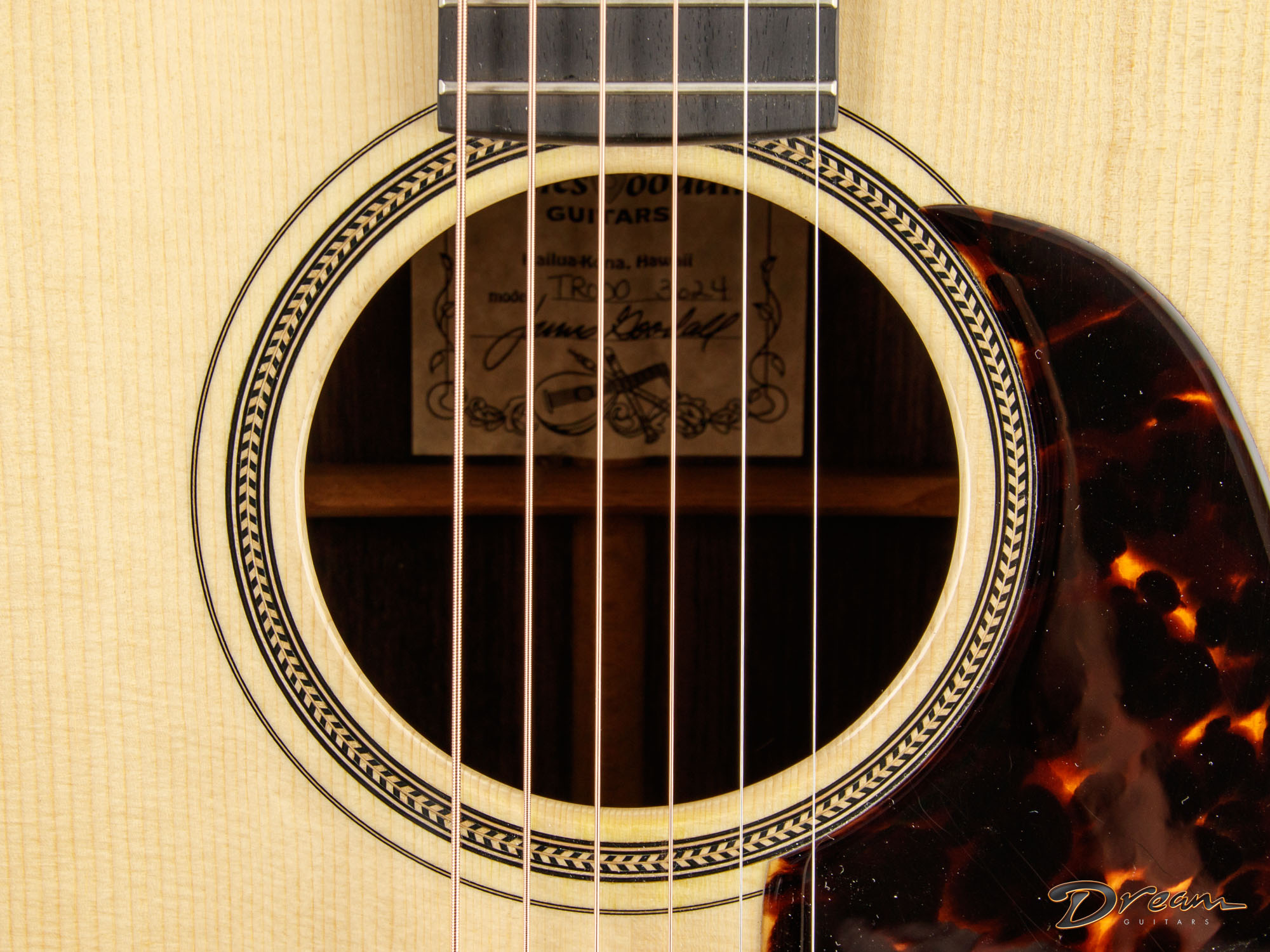 The wider spacing makes it a joy for fingerstyle or slack key, but it still has plenty of punch for flatpicking. A wonderful example of how time rewards great tonewoods and great craftsmanship.