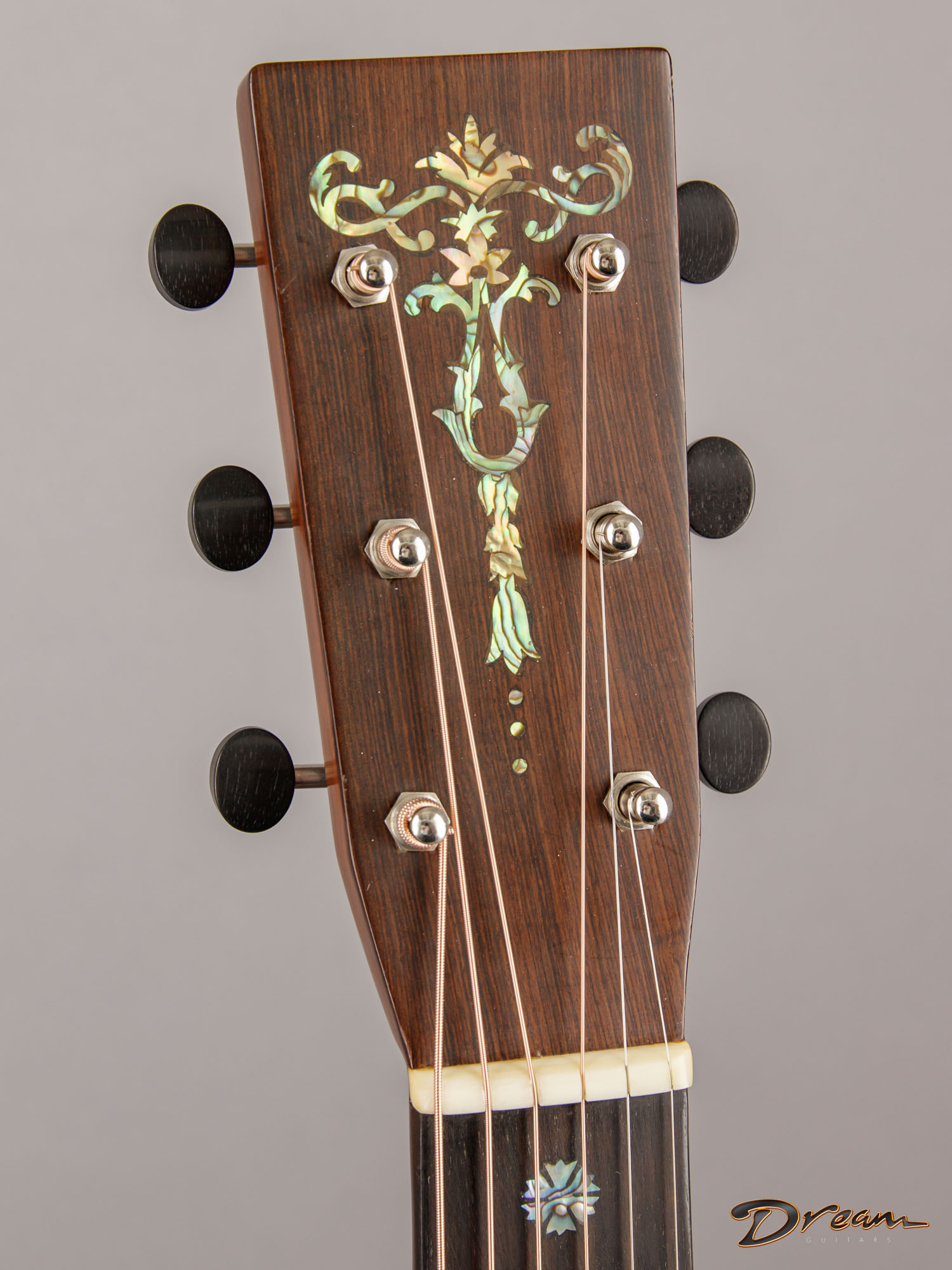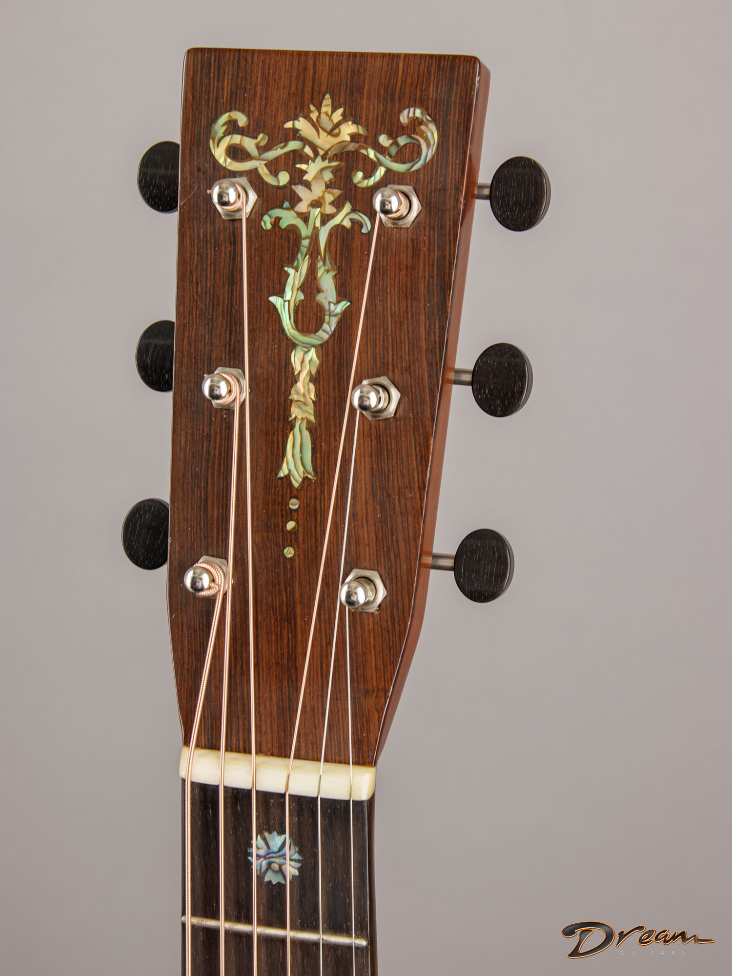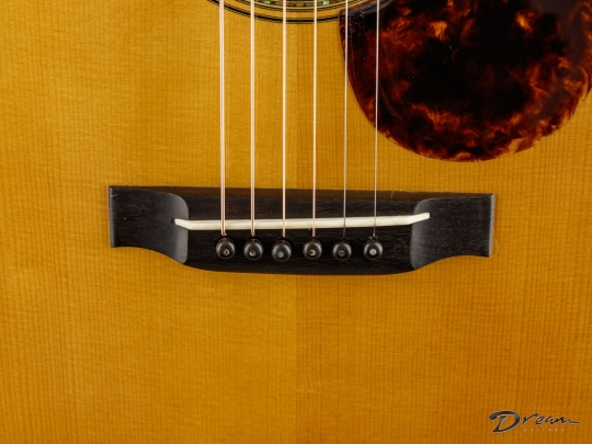 It features a full neck profile, wide spacing at the nut and saddle, and that ever-comfortable OM body. Often, a guitar that can do many things well loses a bit of character in the process—but one of the hallmarks of the pre-war OM is its ability to handle everything with authority. This Greven captures that perfectly.