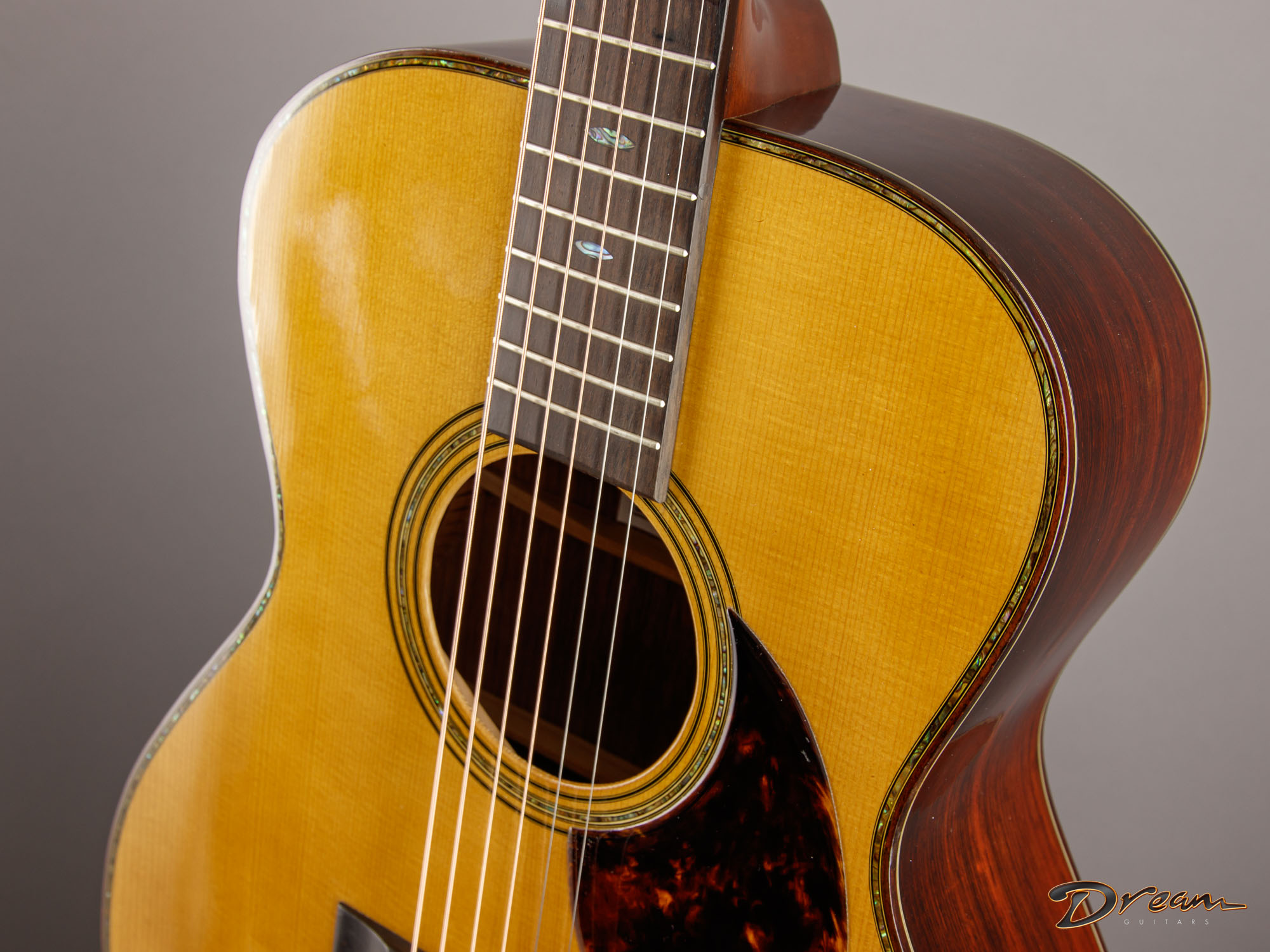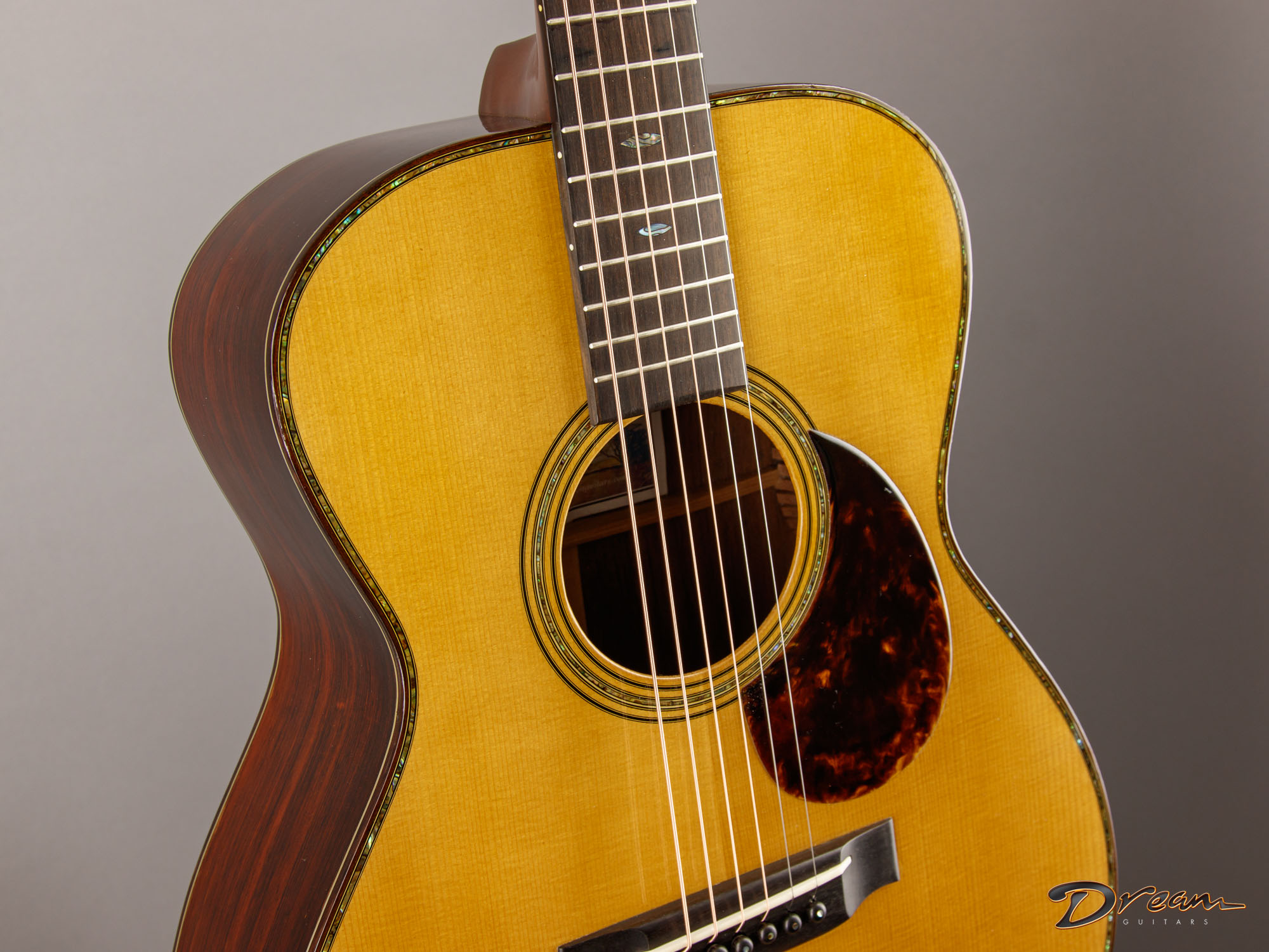 2015 Greven OM 40 Style 1937, with Brazilian Rosewood back and sides and a master-grade Adirondack Spruce top. An excellent modern offering of a classic, true-to-form vintage design. With ten years under its belt at the time of publication, this one is wide open and alive.