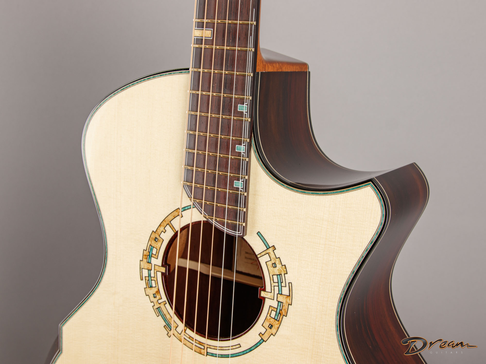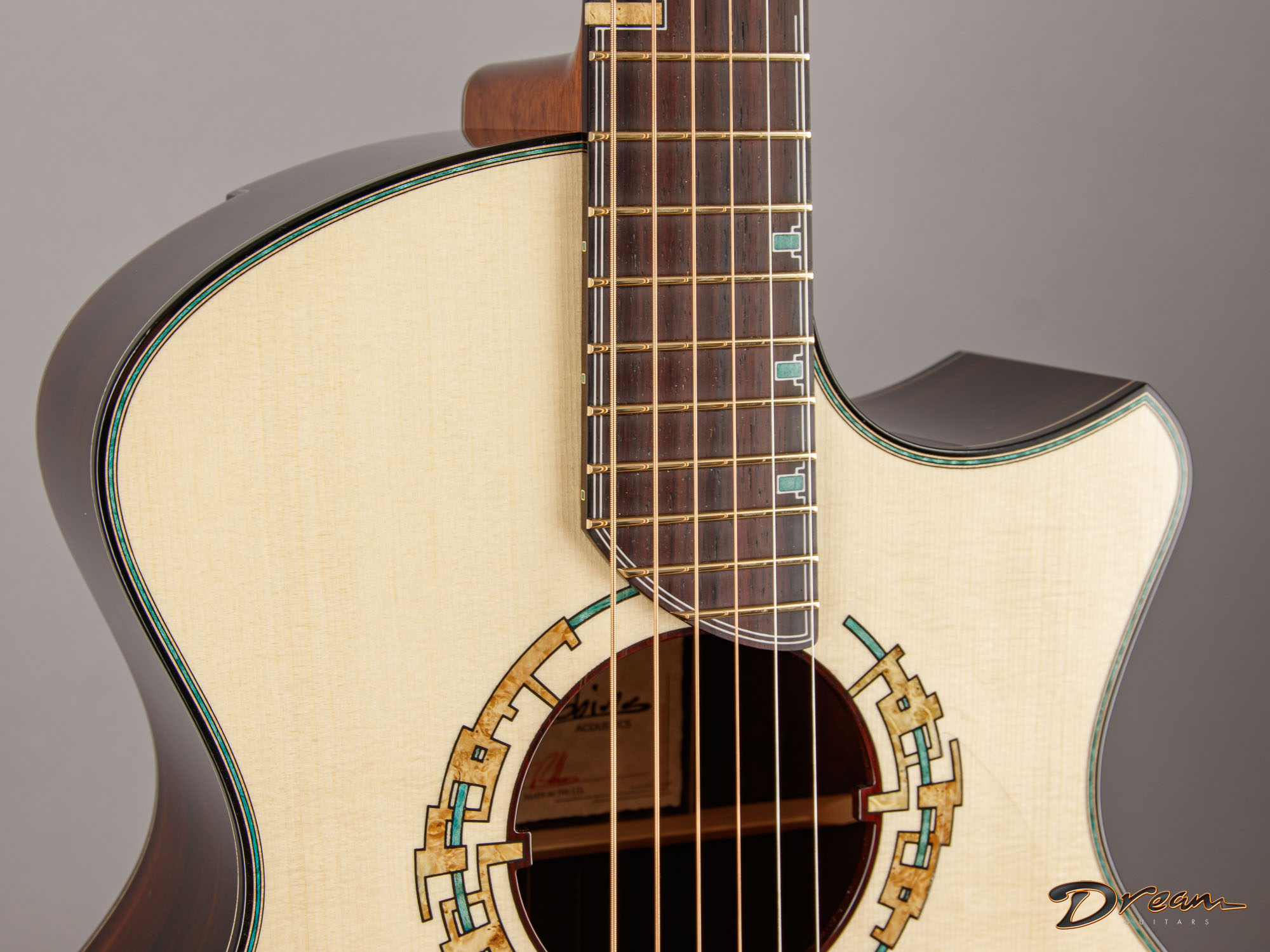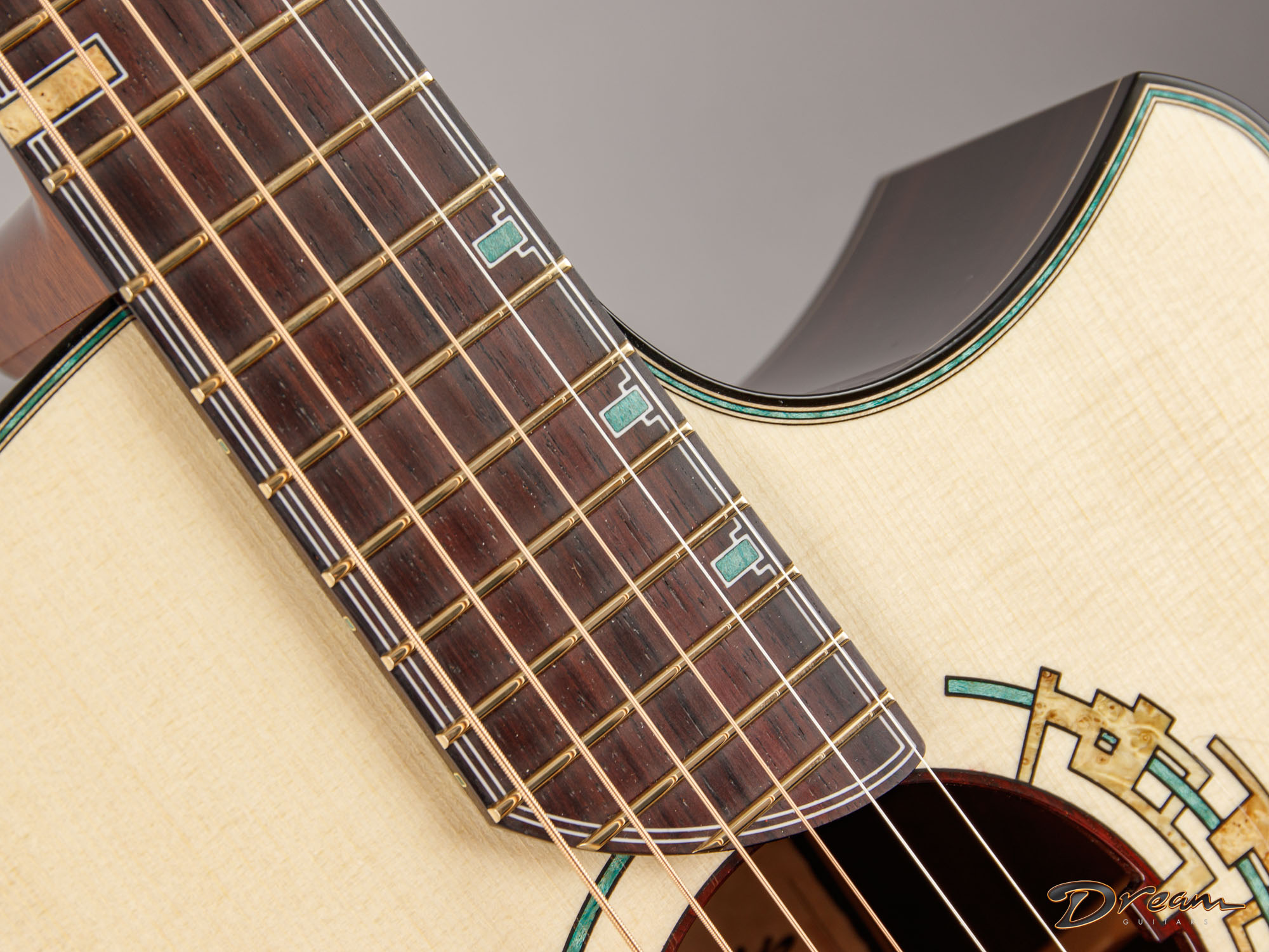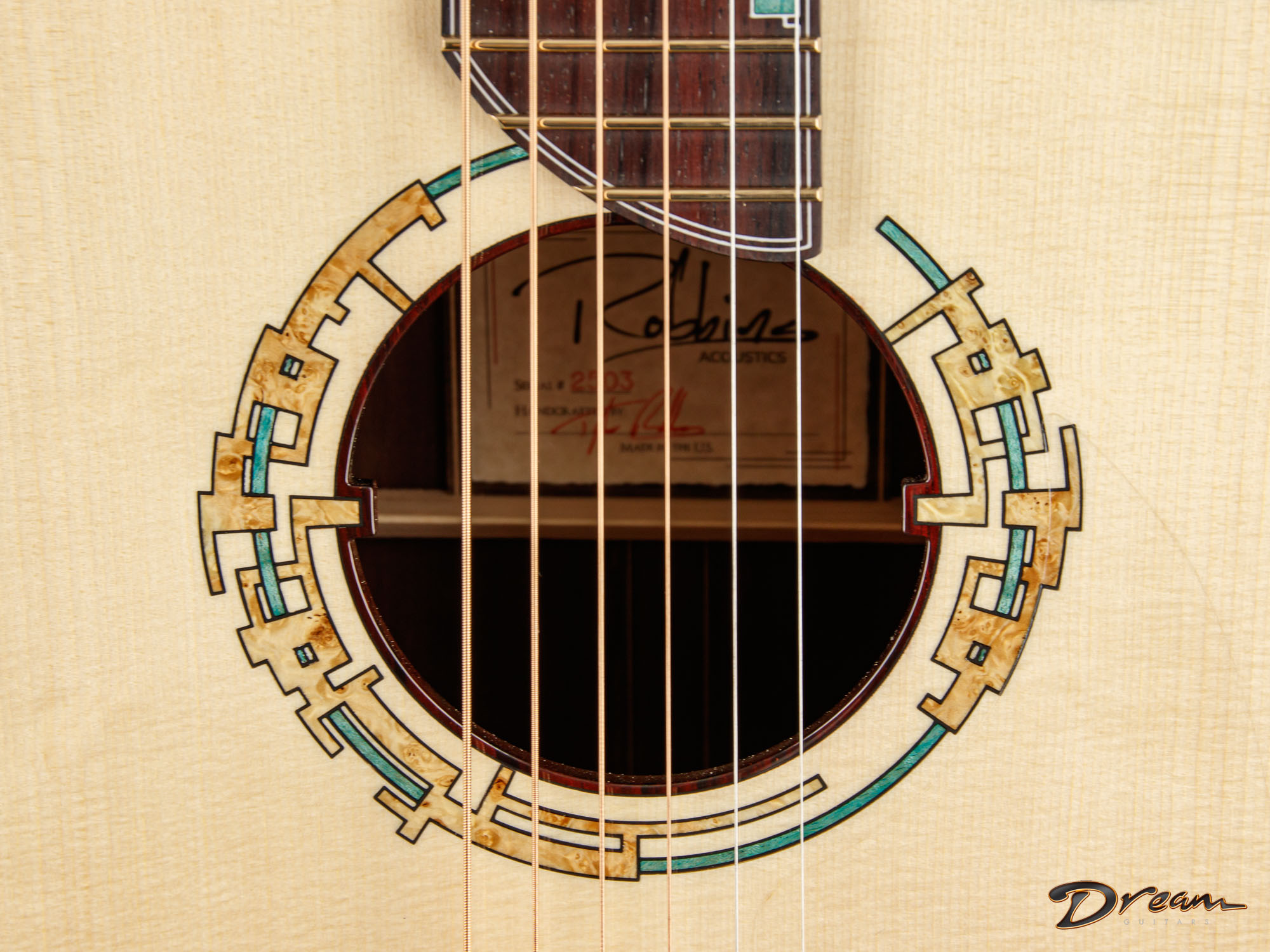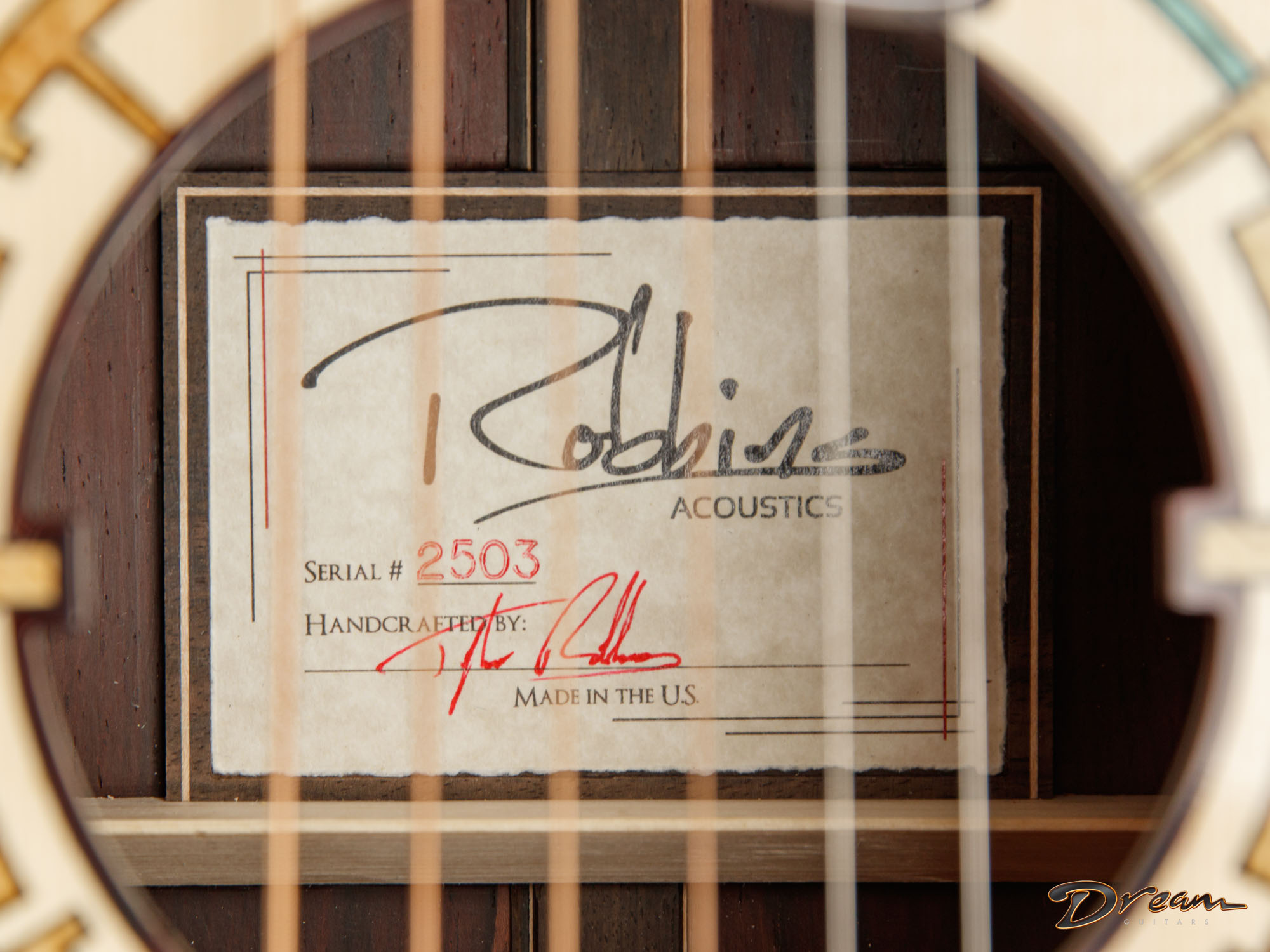 This guitar was crafted alongside a near-twin R.2 model, featuring green appointments, and it’s remarkable how similar the two instruments feel and sound. Both are a testament to the precision, artistry, and tonal excellence of Tyler Robbins. Please take a look and a listen for yourself.